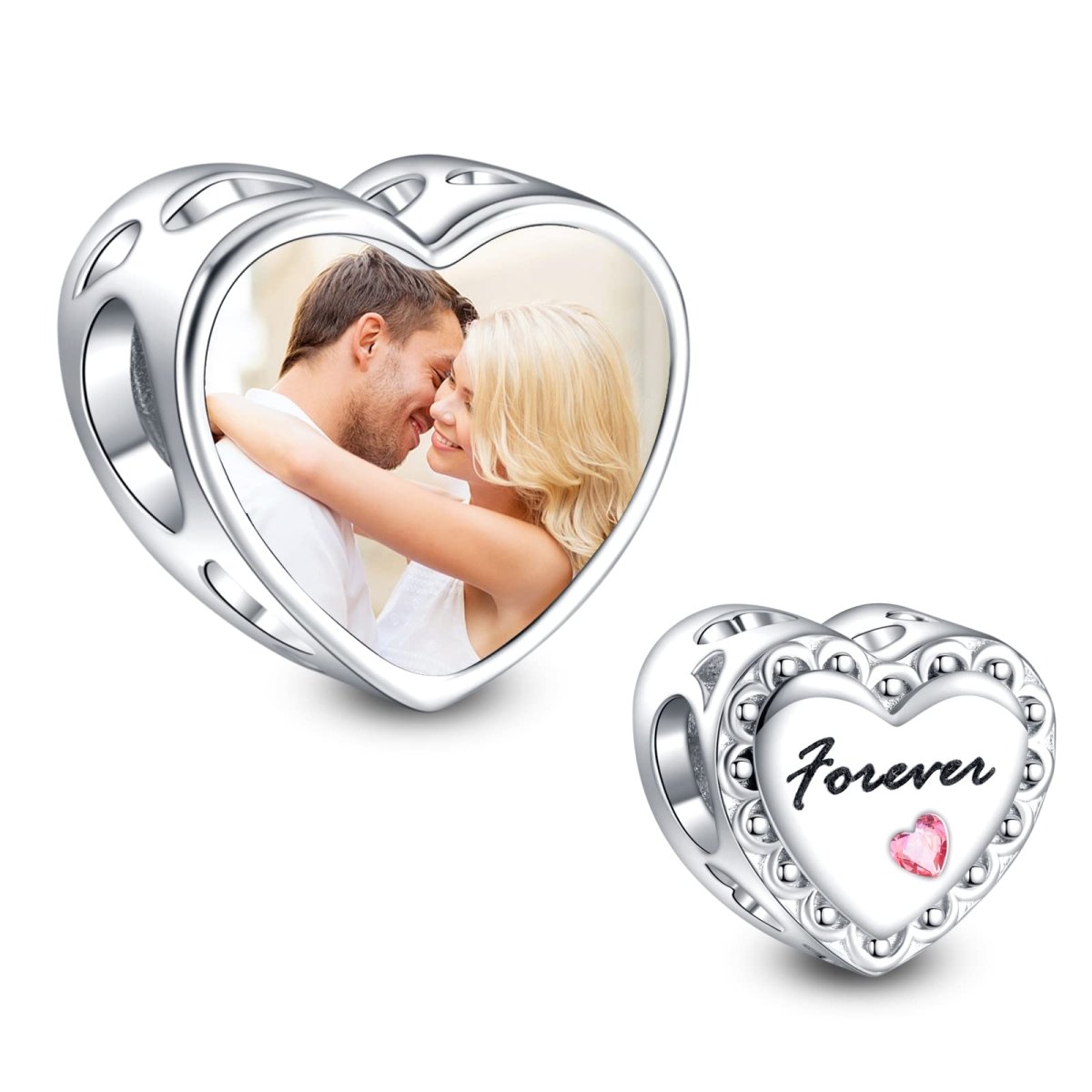 Personalized Photo & Cubic Zirconia Paved Heart Charm