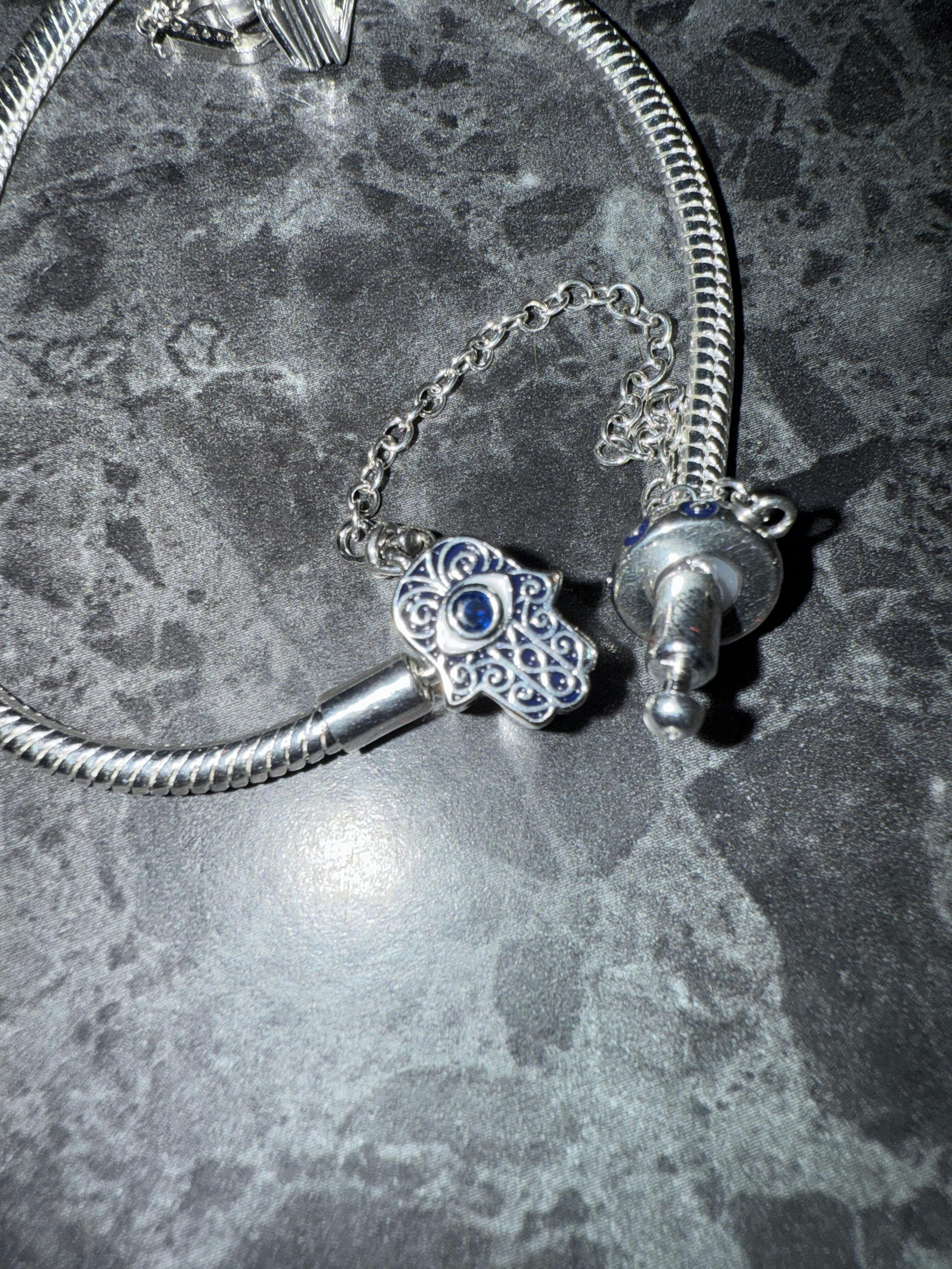 Navrženo tak, aby přinášelo ochranu a styl, tento výrazný náramek od Pangama Jewelry obsahuje zářivý modrý přívěsek "evil eye" obklopený oslnivými krystaly. Silný symbol pozitivní energie a štěstí, ideální pro každodenní nošení.