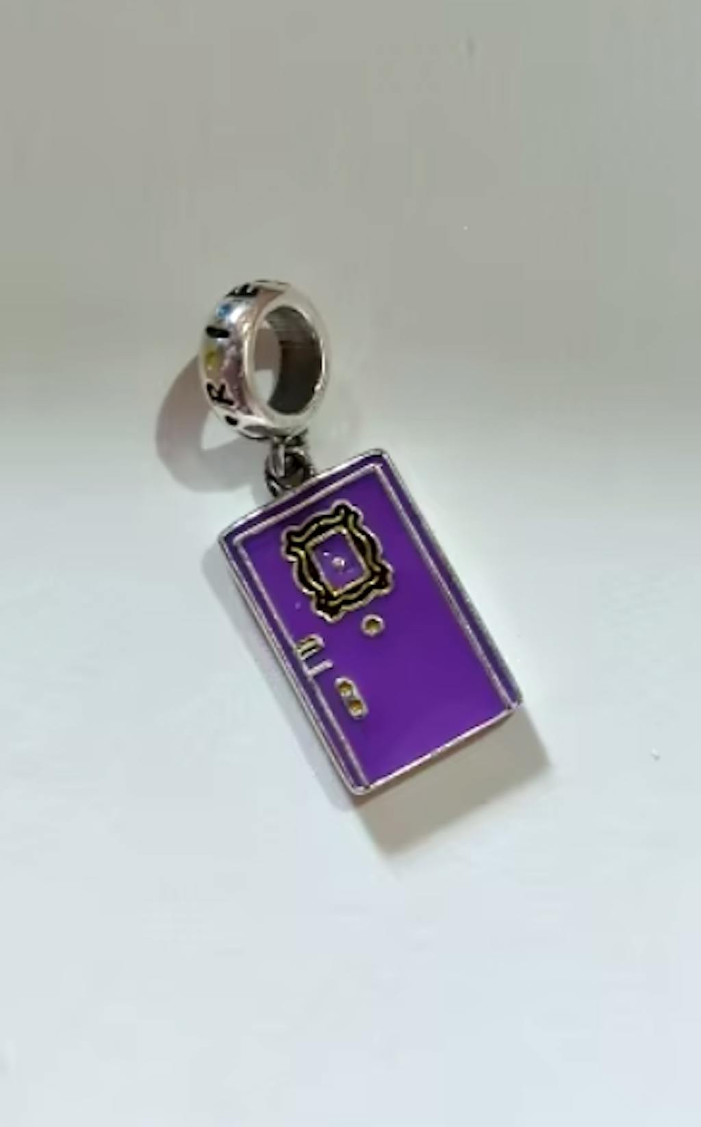 Μπείτε στον κόσμο των Friends με το εμβληματικό μοβ γούρι πόρτας από την Pangama Jewelry. Κατασκευασμένο από ασήμι 925, αυτό το γούρι παρουσιάζει την διάσημη πόρτα της Monica με το χαρακτηριστικό πλαίσιο της, αποτυπώνοντας την ουσία του διαμερίσματος των Friends. Είναι μια τέλεια υπενθύμιση των αξέχαστων στιγμών που μοιράστηκε η παρέα, με φόντο το αγαπημένο τους σπίτι.