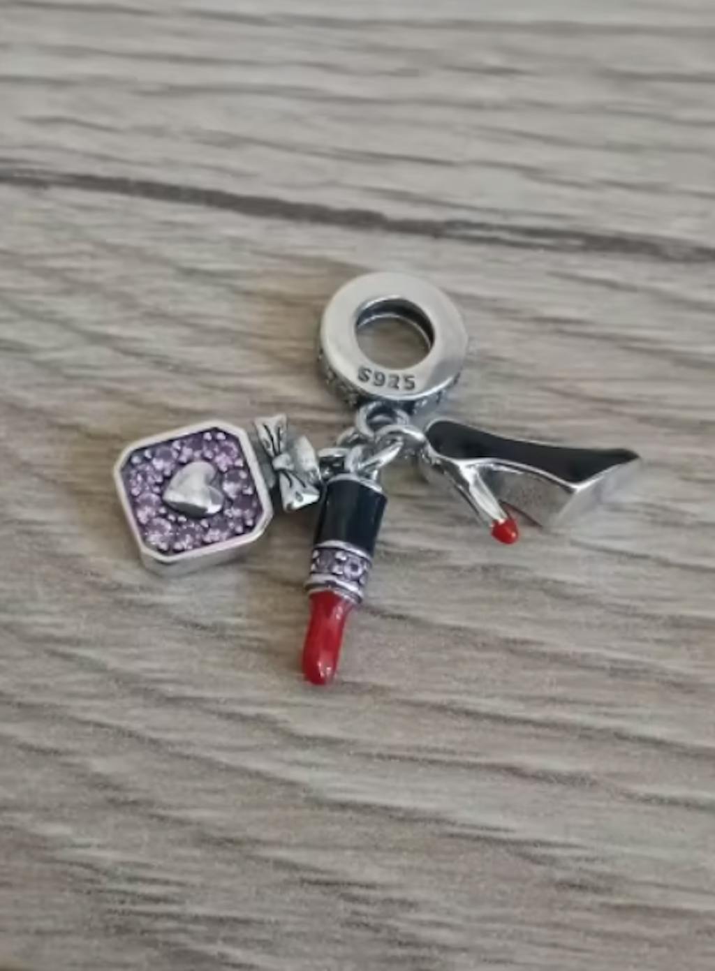 Abbraccia il tuo amore per la moda con il Charm Dangle Stiletto, Dress & Lipstick di Pangama Jewelry. Questo set di charm glamour presenta un vestito scintillante, un classico stiletto e un rossetto audace, rendendolo il pezzo d'affermazione definitivo per gli amanti dello stile. Realizzato in argento sterling 925 con dettagli in smalto vivace, emana eleganza e fiducia.