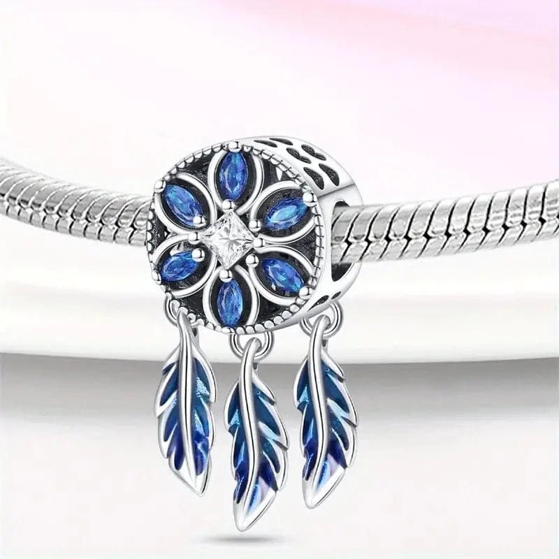 パガマジュエリーのブルーストーンドリームキャッチャーチャームで夢をつかみましょう。925スターリングシルバーで作られたこのチャームは、美しく詳細なドリームキャッチャーが青い石で飾られており、保護とポジティブさを象徴しています。