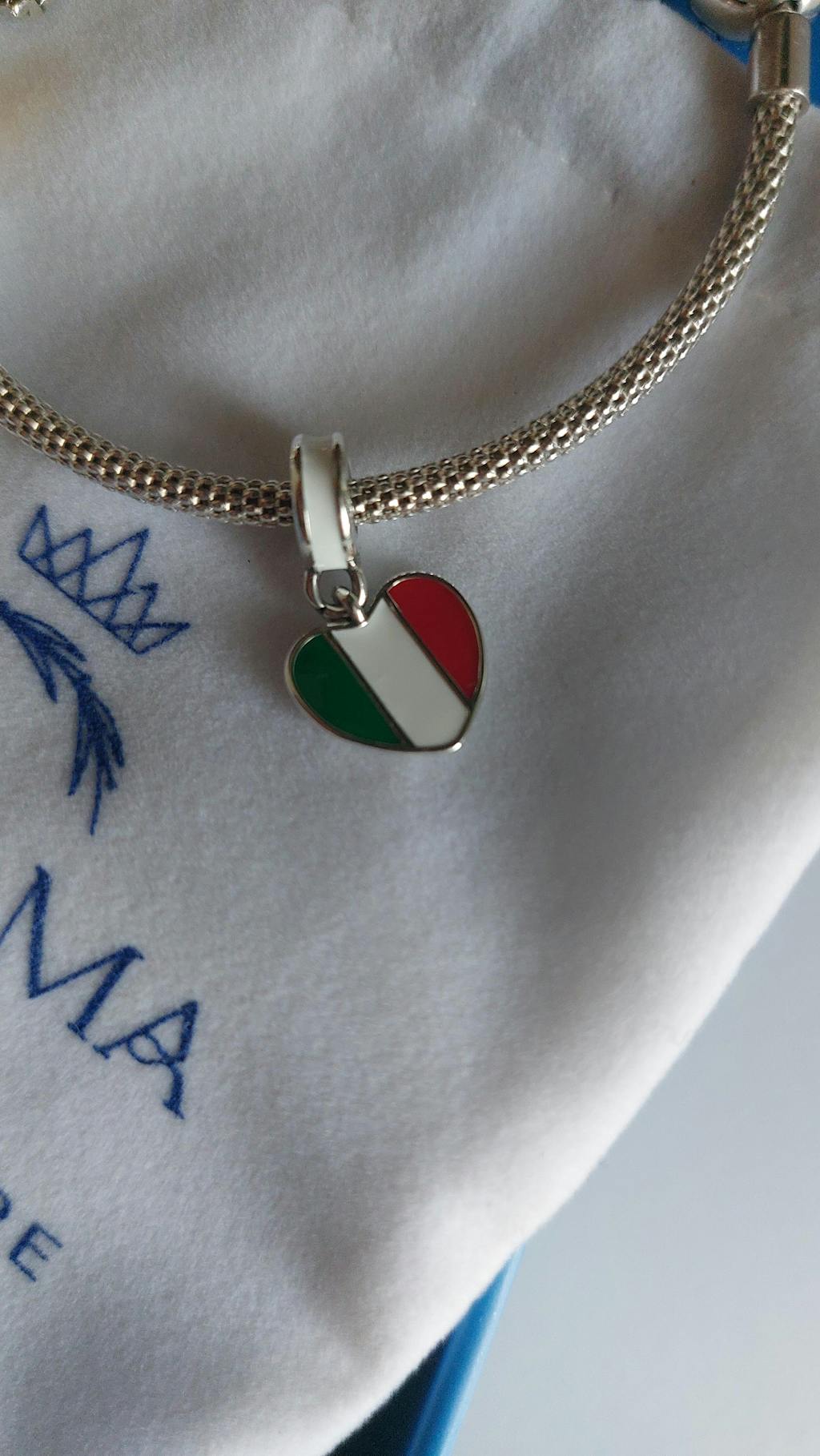 Visa din italienska stolthet med Italy Heart Flag Dangle Charm från Pangama Jewelry. Designad i en klassisk hjärtform, visar denna charm de livliga gröna, vita och röda färgerna av den italienska flaggan, som symboliserar kultur, arv och kärlek till Italien. Tillverkad av 925 sterling silver, är det en perfekt charm för dem som värdesätter sina italienska rötter.